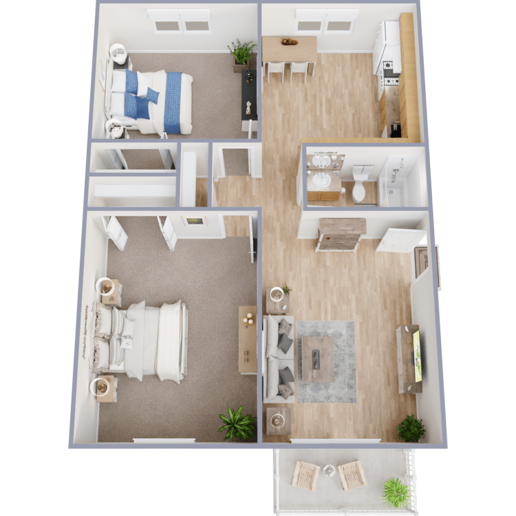 Inside each of our pet-friendly apartments for rent at Shadow Wood, comfort and modern living blend seamlessly. Our thoughtfully designed two-bedroom floor plans feature inviting private balconies or patios, where you can enjoy your morning coffee or unwind at sunset. With cable-ready connections, cozy carpet flooring, and stylish vinyl accents, every detail is carefully crafted to strike a balance between functionality and style. Central air and heating systems ensure your home remains a comfortable retreat year-round, while spacious layouts provide room for you to make your space uniquely yours.